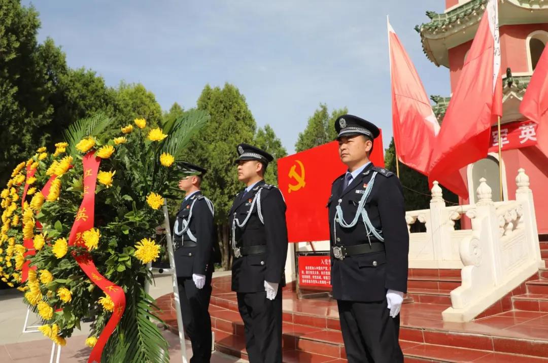全體黨員身著深色正裝,胸佩黨徽,整齊地肅立在紅軍勝利會師紀念塔前,全國勞動模范張平香、全國熱愛企業優秀員工李銀芳、甘肅省五一勞動獎章獲得者張想想、甘肅省金牌工人徐建雙、蘭州好人王麗萍等先進模范代表站立在前排。